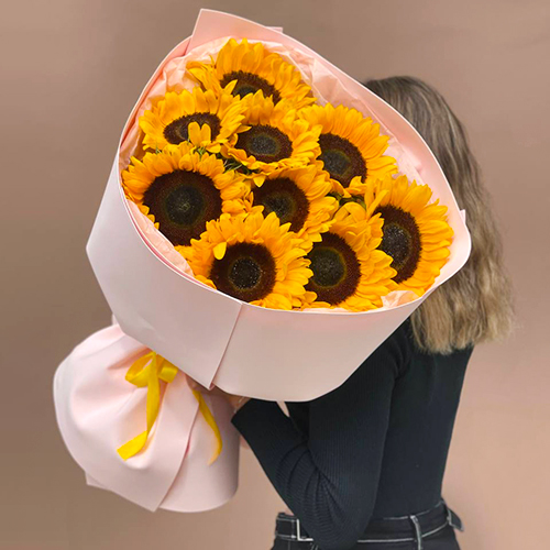 Букет "Солнечный рассвет" из 9 подсолнухов