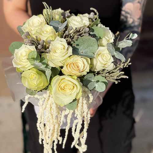 Заказанный букет вы можете забрать у нас в магазине по адресу: г. Жуковский, ул. Чкалова, 38а - с 7:00 до 24:00!