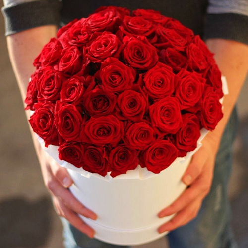 Композиция в шляпной коробке "Бонни и Клайд" из 35 красных роз